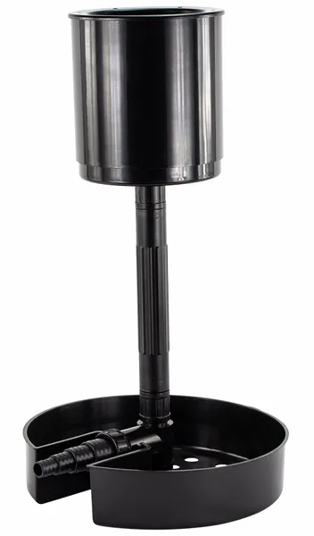 De aquaforte drijvende skimmer op standaard is de ideale skimmer om het vijveroppervlak van je vijver schoon te houden. De aquaforte drijvende skimmer is ideaal voor het schoonhouden van een wateroppervlakte van 10 m2. Een skimmer is erg belangrijk voor het opvangen van al het organische afval dat in het vijverwater beland. Organisch afval wat naar de bodem zinkt zorgt voor het verstoren van het ecosysteem. Daarbij zorgt het voor veel onderhoud en algenvorming wanneer er veel organisch afval op de bodem komt te liggen. De voet van de aquaforte drijvende skimmer kan makkelijk verzwaard worden doormiddel van stenen. De skimmer heeft een hoogte van 63cm en kan drijven tot 80cm hoogte. Bij het gebruik van de aquaforte drijvende skimmer op standaard ben je verzekerd van een betere waterkwaliteit.