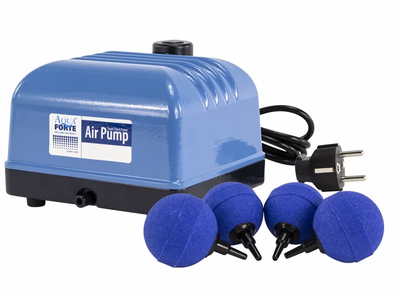 Een luchtpomp is voor vrijwel iedere vijver een aanrader. Zowel in de zomer- als in de wintermaanden kan vijverbeluchting een hele hoop problemen voorkomen. In de zomer, wanneer de watertemperaturen stijgen, neemt het zuurstofgehalte in het water af. Een te laag zuurstofgehalte zorgt niet alleen voor een afname van de waterkwaliteit maar kan ook zorgen voor acute vissterfte. In de wintermaanden kun je er met een luchtpomp voor zorgen dat de vijver (gedeeltelijk) ijsvrij blijft. De Aquaforte V-20 wordt compleet geleverd en is geschikt voor vijvers tot maximaal 12.000 liter.