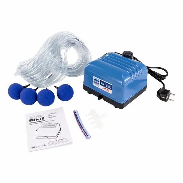 De Aquaforte V-serie luchtpompen zijn een van de meest verkochte luchtpompen op de markt. Het interessante prijspeil in combinatie met een hoge luchtopbrengst en -druk maakt deze luchtpomp populair bij veel vijverbezitters. Het geluidsniveau van de Aquaforte V-20 is redelijk laag te noemen. Ten opzichte van andere luchtpompen op de markt is de Aquaforte V-20 hiermee een goede middenmotor. Dankzij de hoogwaardige aluminium behuizing en een dubbele luchtkamer staat de luchtpomp garant voor een langdurig en continu gebruik.