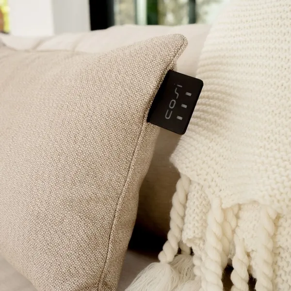Wist je dat dit kussen eco-friendly is? Wanneer je dit kussen gebruikt is de warmte meteen voelbaar en zo hoef je de thermostaat of terrasheater niet aan te zetten. De intensiteit van de warmte bepaal je helemaal zelf. Het kussen heeft namelijk drie verschillende standen. Zet ´m op standje low 38°C, mid 45°C of high 50°C. De stand selecteer je via de warmteknop op het kussen. Met een enkele druk op de knop wordt het infrarood warmte-element geactiveerd. Of het nu overdag of avond is: je geniet van de heerlijke warmte van deze Cosipillow.