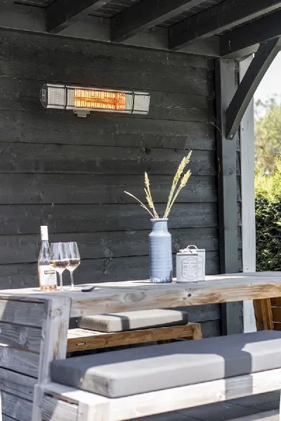 Het verwarmingselement van deze elektrische terrasheater verwarmt niet de lucht op je terras, maar de voorwerpen op je terras. Hierdoor wordt niet de omgeving, maar jouw lichaam lekker warm. Ander voordeel hiervan is dat de warmte van deze heater nauwelijks verwaaid. Dit maakt deze terrasverwarmer van Eurom zeer geschikt voor gebruik op een open terras. Bovendien heeft deze terrasverwarmer een IP-waarde van 65, wat inhoudt dat deze stof- en spuitwaterdicht is en altijd buiten kan blijven staan. Wat voor weer het ook is, met deze terrasverwarmer zit jij er altijd warmpjes bij op je terras.