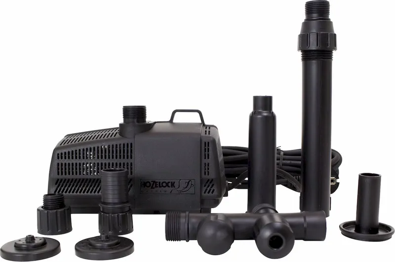 Met dit Hozelock Ecopower+ filterset ben je verzekerd van een compleet filtratiesysteem voor een heldere en gezonde vijver. Met dit complete vijverfilter in combinatie met de Hozelock fonteinpomp, vijverslang en slangklemmen ben je in een handeling klaar. Bij juist gebruik wordt ook hier de Hozelock helderder water garantie afgegeven. Deze set is geschikt voor vijvers tot maximaal 12000 liter. Deze maximale vijvergrootte is gebaseerd op vijvers zonder vissen, als je een lage of hogere visbezetting hebt wordt deze maximale inhoud verlaagd tot 9000 of 6000 liter. Bij de aankoop van deze set ontvang je de Hozelock Ecopower+ 12000, de Hozelock Cascade 4000 fonteinpomp en vijverslang (5 meter) inclusief slangklemmen.