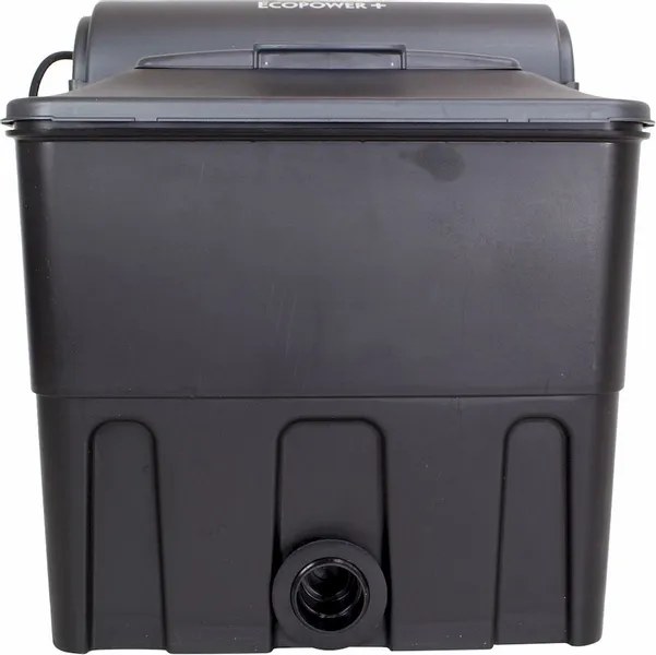 De Hozelock Ecopower+ 12000 maakt gebruik van een drietal verschillende filtermaterialen voor een mechanische én biologische filtratie. Het filter dient bovengronds geplaatst te worden aan de rand van de vijver of boven aan een beekloop of waterval. Het water komt het filter binnen aan de bovenzijde. Hier wordt het vijverwater allereerst langs een UV-C lamp geleid waarna het vijverwater via een sproeikop (voegt zuurstof toe aan het water) wordt verdeeld over de schuimmat. Vervolgens stroomt het vijverwater langs het biologische Kaldnes K3 filtermateriaal.
