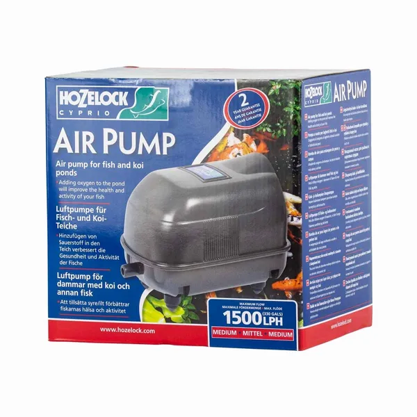 Je vijver wil je eigenlijk altijd beluchten. Zowel op warme zomerdagen als de ijskoude winterdagen is de luchtpomp heel belangrijk voor je vissen. De Hozelock luchtpompset komt dan zeker van pas. Dit model is degelijk en bestand tegen weersinvloeden. De luchtpomp produceert 1500 liter en is geschikt voor een maximale vijvergrootte van 15.000 liter (zonder vissen).