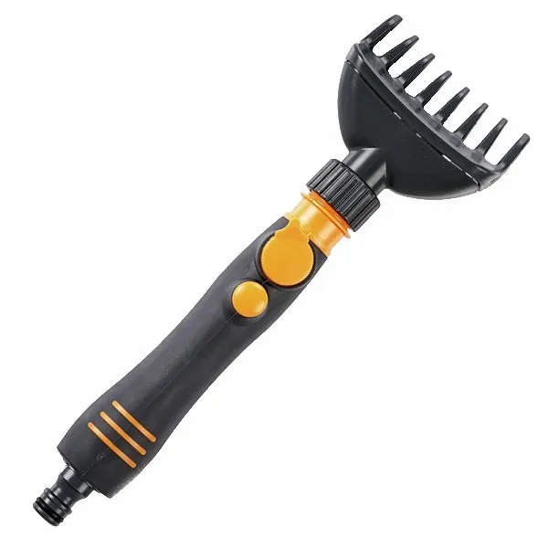 De Kokido filter kam is makkelijk aan te sluiten op een normale tuinslang aansluiting. Zet de kam aan met de aan- en uit schakelaar en bepaal de sterkte van de waterstroom met de regulator. Zo zorg je ervoor dat er niks aan je filter beschadigt. Doordat de Kokido filter kam over 8 vingers en 6 waterstralen beschikt zal je nagenoeg niet nat worden tijdens het schoonmaken van je spa filter.