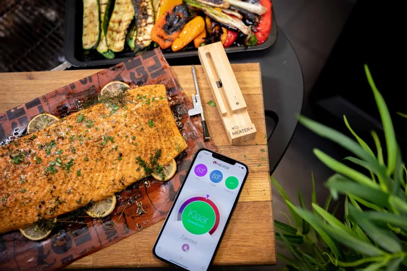 De revolutionaire thermometers van MEATER veranderen de manier van barbecueën en grillen! De MEATER Plus is de eerste echte draadloze slimme thermometer en een must-have voor de echte bbq liefhebber. De MEATER+ heeft een bluetooth bereik van 50 meter en is te monitoren via een app. Hierdoor kan je gemakkelijk vanaf je telefoon of tablet de temperatuur in de gaten houden. Samen met de MEATER app maakt deze thermometer het mogelijk om de sappigste gerechten klaar te maken op de barbecue of grill. De gewenste temperatuur en grill-tijd is gemakkelijk in te stellen via de app waardoor bakken en grillen een zacht gekookt eitje wordt.