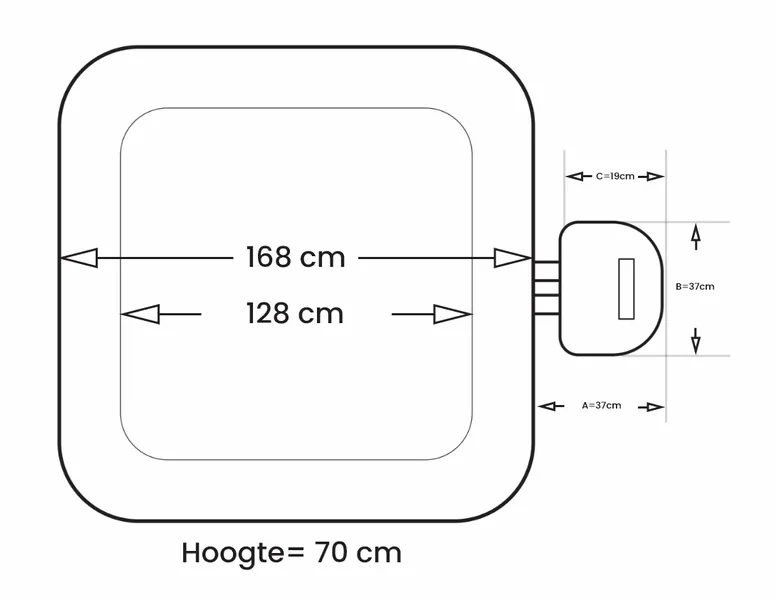 Opzetten is eenvoudig! Spreid de spa op de grond en laat de geïntegreerde pomp zijn werk doen. Binnen enkele minuten staat de basis en kan de spa gevuld worden met water. Nu nog verwarmen en genieten maar!