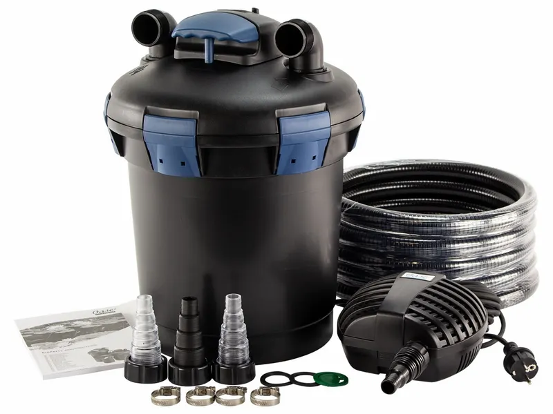Met dit complete filterpakket van Oase bent u verzekerd van een heldere en gezonde vijver. De Oase Biopress 6000 is geschikt voor vijvers met een maximale inhoud van 6000 liter. In het geval van visvijvers wordt deze maximale vijverinhoud gehalveerd. En bent u de gelukkige eigenaar van koikarpers? Dan moet u rekening houden met een verlaging tot 1500 liter vijverinhoud. Als u rekening houdt met deze gegevens bent u verzekerd van een heldere en gezonde vijver. U kunt zelfs aanspraak maken op de Oase ‘Helder Water Garantie’.