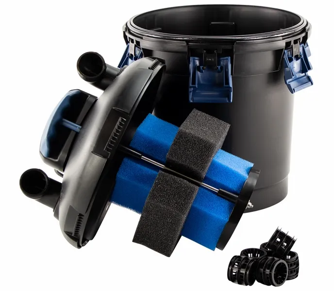 De Oase Biopress 6000 is voorzien van drie filtermousses van verschillende grofheden. De twee zwarte filtermatten zorgen in eerste instantie voor de eerste mechanische filtratie. Hierbij worden de grove en fijnere vuildeeltjes uit het water verwijderd. Tevens hebben deze filtermatten een biologische functie.
