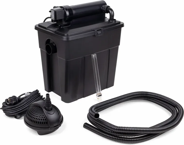 Het grote voordeel van een complete filterset is dat alle onderdelen qua capaciteit precies op elkaar zijn afgestemd. Zo heb je een goede doorstroming en een effectieve filtering van het vijverwater. Ook vind je in de set alles wat je nodig hebt om de set juist te installeren. Je kunt snel na installatie weer genieten van een kraakheldere vijver.