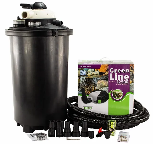 Deze Velda Clear Control 75 filterset wordt compleet geleverd inclusief drukfilter, vijverpomp, UV-C unit en filterslang. Het voordeel van een complete filterset is dat alles perfect op elkaar is afgestemd. Deze Velda Clear Control 75 filterset is geschikt voor vijvers tot maximaal 30.000 liter. Voor vijvers met visbezetting wordt deze maximale vijverinhoud gehalveerd tot 15.000 liter en in het geval van koivijvers moet je rekening houden met een extra halvering tot 7500 liter. Bij de aankoop ontvang je: