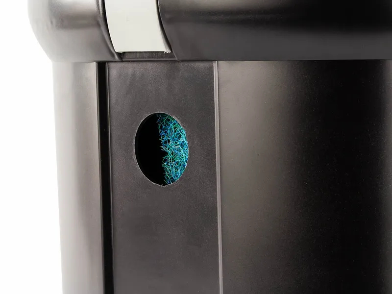 2. De groene filtermat zorgt voor de eerste mechanische filtratie. De meest grove vuildeeltjes worden uit het water gefilterd.