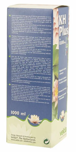 Velda KH Plus activeert de waterplanten. KH Plus verhoogt de carbonaathardheid (KH-waarde) van het vijverwater. Deze KH-waarde wordt, evenals als de GH-waarde, uitgedrukt in Duitse Hardheidsgraden (DH). Een voldoende hoge waarde (4 tot 8 °DH) gaat verzuring in het vijvermilieu tegen en zorgt, door het gebonden CO2, voor een goede ontwikkeling van de zuurstofplanten.