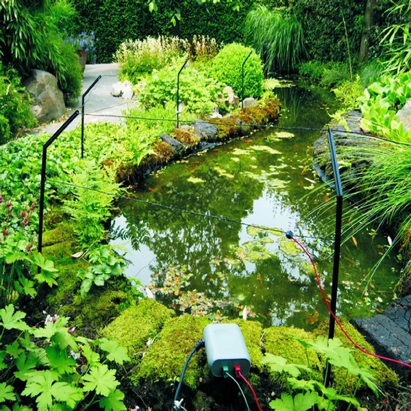 Met de Velda Pond Protector weer je reigers en andere ongewenste indringers succesvol van je vijver. Deze vijverbescherming werkt met een ongevaarlijke schrikdraad die rondom de vijverrand wordt geplaatst. Zodra een reiger of andere ongewenste indringer in aanraking komt met de draad geeft de meegeleverde transformator een elektrische puls af aan de draad. Deze spanning is ongevaarlijk voor mens en dier, maar veroorzaakt een schrikreactie waardoor de reiger snel weg zal vluchten en in het vervolg jouw vijver zal mijden.