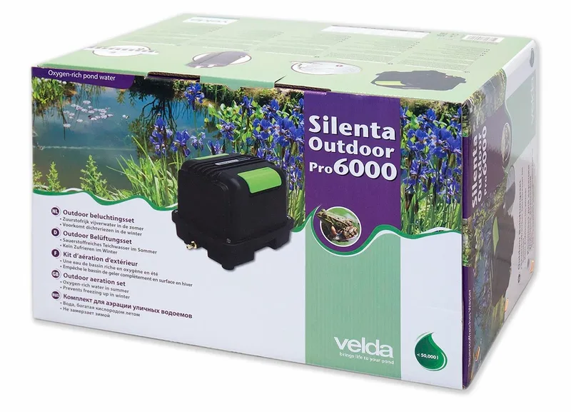 De Velda Silenta Outdoor Pro 6000 is een zeer goede luchtpomp met veel voordelen. De luchtpomp combineert een hoge luchtopbrengst met een zeer betrouwbare kwaliteit en levensduur. Door de geluidsarme en energiezuinige motor is de Velda Silenta Outdoor Pro 6000 is bij uitstek geschikt voor continu gebruik. Omdat de luchtpomp volledig regenwaterbestendig is kan deze ook zonder problemen buiten naast de vijver geplaatst worden.