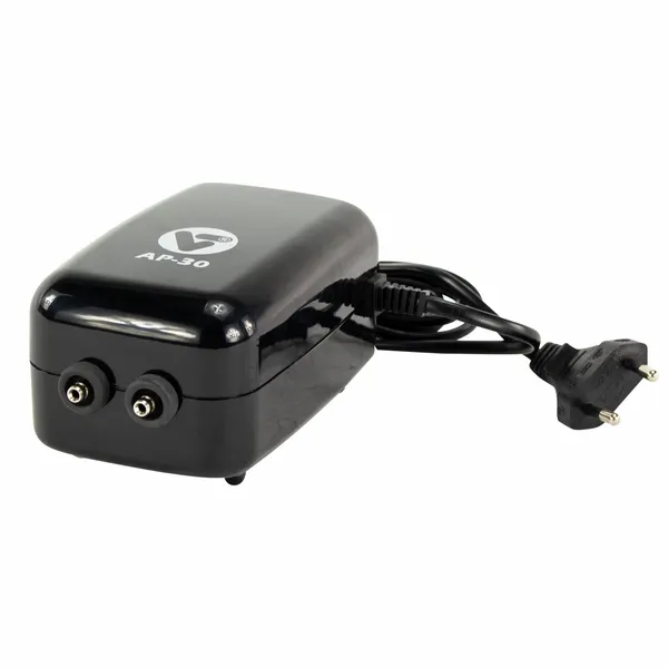 De Velda V-Tech luchtpompset AP-30 is een compacte luchtpomp met een vermogen van 4 watt en een capaciteit van 210 liter per uur. Deze luchtpompset met regelbare capaciteit is geschikt voor aquariums of kleine vijvers met een maximale inhoud van 2000 liter. Met inbegrip van een luchtslang en twee luchtstenen, zorgt hij voor een effectieve beluchting van je wateromgeving. Het is belangrijk om deze luchtpomp op een droge plek boven het waterniveau te installeren om te voorkomen dat deze onder water komt, aangezien deze daar niet voor geschikt is.