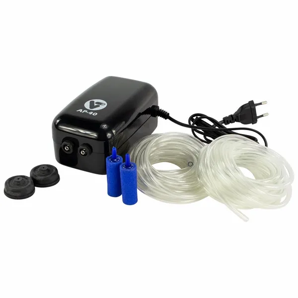 De veelzijdigheid van de AP-40 maakt hem geschikt voor verschillende vijvertypes. Of je nu een vijver hebt zonder vissen tot 2700 liter, een visvijver tot 2250 liter, of zelfs een koivijver tot 1125 liter, deze luchtpompset biedt een handige en betrouwbare oplossing om jouw wateromgeving in topconditie te houden!