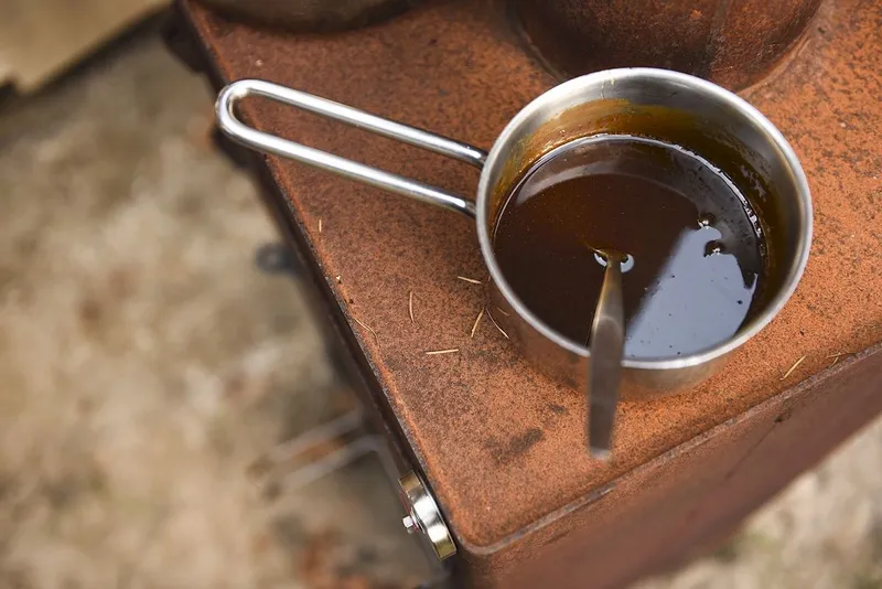 De outdooroven van Weltevree heeft een dubbele wand. Daartussen wordt de rook weggeleid van het vuur, langs de oven en door de schoorsteen. Door deze slimme constructie komt er minder rook uit de opening van de haard en komt het eten niet in aanraking met de rook.